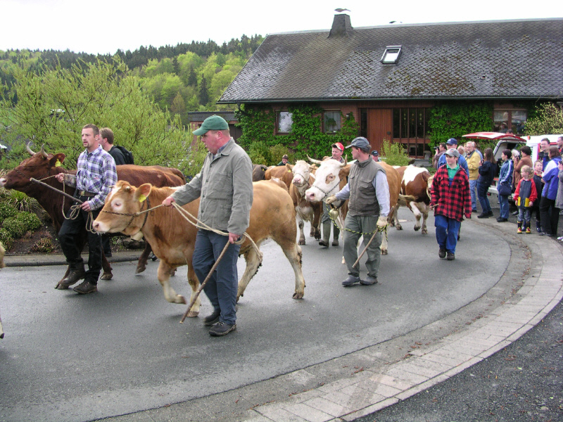Unter den "Oberhirten" Iris Bopper und Karl Schultheis fand unter großem Anklang ein Viehauftrieb statt, wie er früher täglich zu beobachten war (siehe auchViehauftrieb)
