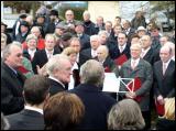 www.mittelhessen.deBericht und Fotos Hinterländer Anzeiger vom 7.12.2003Mit einem herzlichen Empfang begrüßten die Bürger gestern Vormittag in Niedereisenhausen Bundespräsident Johannes Rau. Pünktlich um 11 Uhr fuhr die Kolonne aus gepanzerten Dienstwagen, Begleitfahrzeugen und Polizeiautos vor dem Bürgerhaus in Niedereisenhausen vor. Rund 400 Menschen hatten sich dort versammelt, um einen Blick auf das Staatsoberhaupt zu werfen, seinen Worten zu lauschen oder für ihn zu singen. Ein "Bad in der Menge" nahm Bundespräsident Johannes Rau am Bürgerhaus von Niedereisenhausen nach der offiziellen Begrüßung durch Bürgermeister Peter Pfingst. Die jungen Steffenbergerinnen nutzten die Gelegenheit, dem Staatsmann die Hand zu schütteln, ein paar Sätze über ihre Schule und die Aufgaben von Präsidenten auszutauschen sowie Autogramme zu sammeln.Steffenberg-Niedereisenhausen. In der ersten Reihe begrüßte Bürgermeister Peter Pfingst (parteilos) den hohen Besuch aus Wuppertal. Einen musikalischen Willkommensgruß brachten die Mitglieder des Männergesangvereins "Eintracht" Niedereisenhausen und des Frauen- und Mädchenchores Eisenhausen unter Leitung von Renate Spriestersbach dem Präsidenten entgegen. Sie sangen "Träume aus der Kinderzeit" und schlugen damit schon einen Bogen zum Anlass des Besuchs, der im Kern privater Natur war. Rau wollte an eine Stätte seiner Kindheit zurückkehren und Bekannte aus seiner Jugend treffen. Vor rund 50 Jahren war Rau während der Ferien von seinen Eltern nach Niedereisenhausen geschickt worden, auch weil es auf dem Land in der Not mehr zu Essen gab als in der Großstadt. Die Brauchtumsgruppe Obereisenhausen tanzte und musizierte für den Bundespräsidenten vor Schreiners Haus. In der offiziellen Begrüßungsrede auf der Bühne vor dem Bürgerhaus freute sich Pfingst, dass der Besuch nach dem gescheiterten ersten Termin im September - Raus Hubschrauber konnte wegen Nebel in Wuppertal nicht starten - nun doch noch geklappt hat. Die damals aus Anlass der 900-Jahr-Feier vorgesehene Pflanzung einer Linde habe er inzwischen schon selbst vorgenommen, "aber vielleicht können sie vor Ort nochmal prüfen, ob ich es auch richtig gemacht habe", scherzte Pfingst. Mit "Lieder der Liebe" musikalisch verabschiedet wurde der Bundespräsident am Bürgerhaus vom Jubiläumschor Steinperf unter der Leitung von Gisela Pitzer. Das Gemeindeoberhaupt wies darauf hin, dass den Steffenbergern nicht nur "die prominente Persönlichkeit Johannes Rau" willkommen sei, sondern auch der Mensch, der wie kaum ein anderer Politiker Toleranz, Rücksichtnahme und Bescheidenheit verkörpere - als wohlwollende Unterscheidung von vielen anderen Politikern, die eigentlich mehr mit sich selbst beschäftigt seien, als wirklich Probleme zu lösen. Das Publikum und die anwesende politische Prominenz aus Gemeinde, Kreis, Land und Bund lauschte interessiert den Worten von Pfingst.