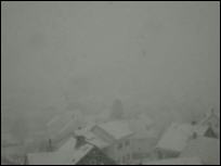 Dorfansicht und Steinmark in der Abendsonne bei - 8 ° am 29.1.2005